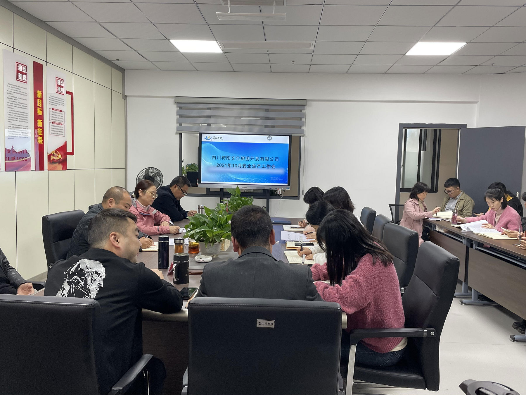 10月29日下午,符陽文旅公司召開2021年10月安全生產工作會。公司董事長譙棣升參加會議,總經理吳平主持會議,公司全體員工參加。譙棣升強調,公司各部門、各三級公司要完善安全生產資料,健全安全生產管理制度;設立安全警示標識標牌,落實安全防護措施;明確崗位職責,開展安全巡查檢查;整改隱患缺失,加強學習教育,提高安全技能。