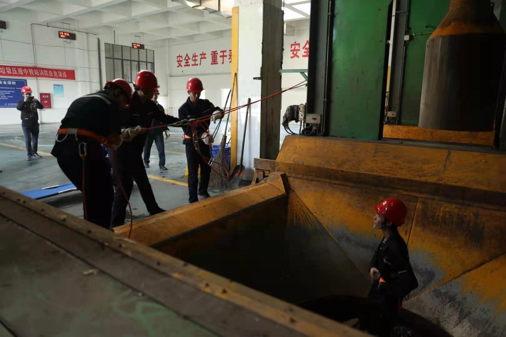 2021年4月26日,城投公司組織職工開展棄土場專項防汛應(yīng)急演練、生活垃圾壓縮中轉(zhuǎn)站消防安全及防高空墜落應(yīng)急演練等活動。