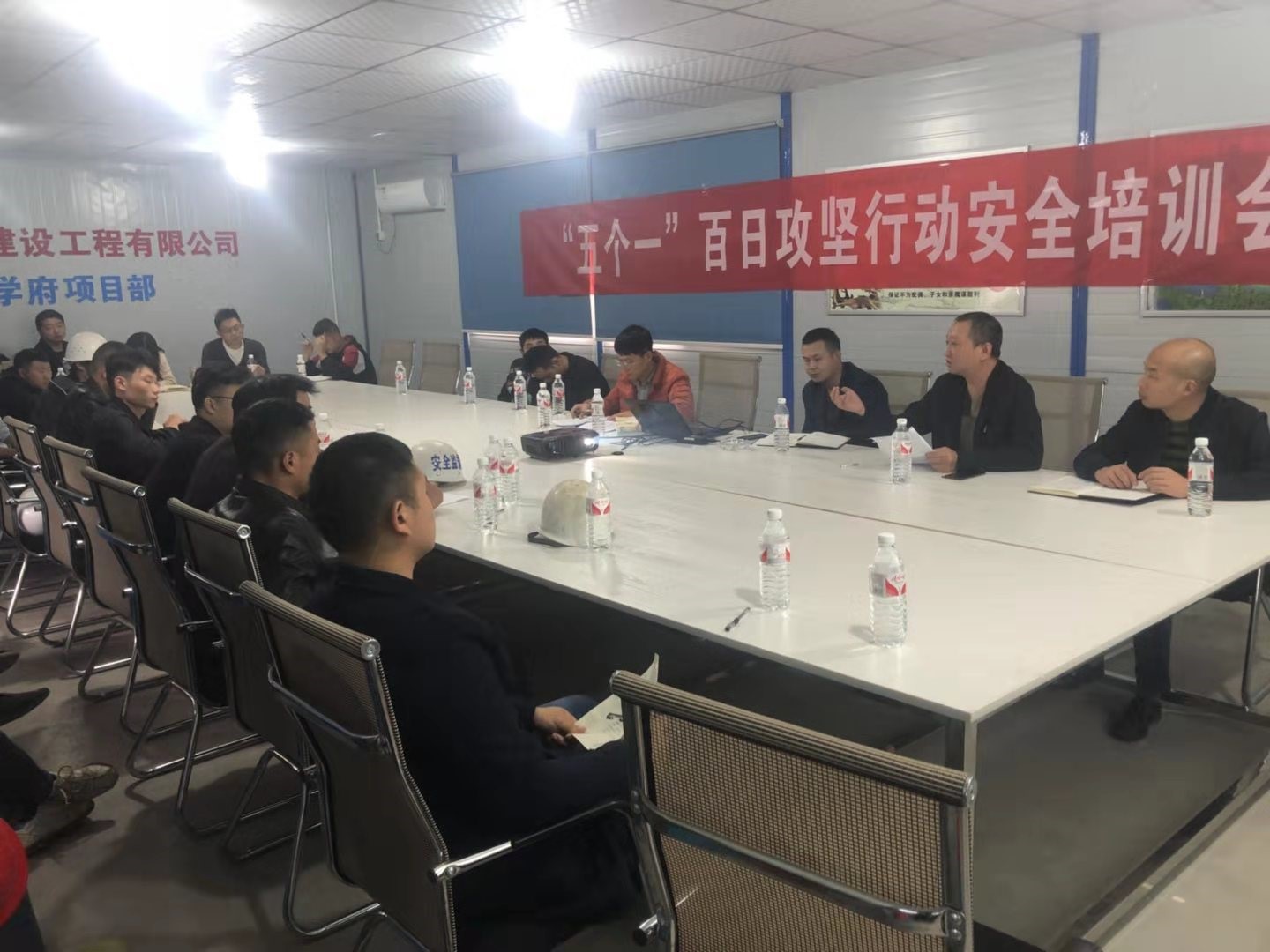 按瀘州阜陽投資集團(tuán)有限公司安全生產(chǎn)委員會關(guān)于印發(fā)《安全生產(chǎn)“五個一”百日攻堅行動》的方案,我司于2019年11月15日邀請瀘州市合江縣質(zhì)安站副站長謝建國同志在鑫晟學(xué)府項目部,對施工單位、勞務(wù)管理人員、部分高危工作人員進(jìn)行行業(yè)領(lǐng)域安全培訓(xùn)。