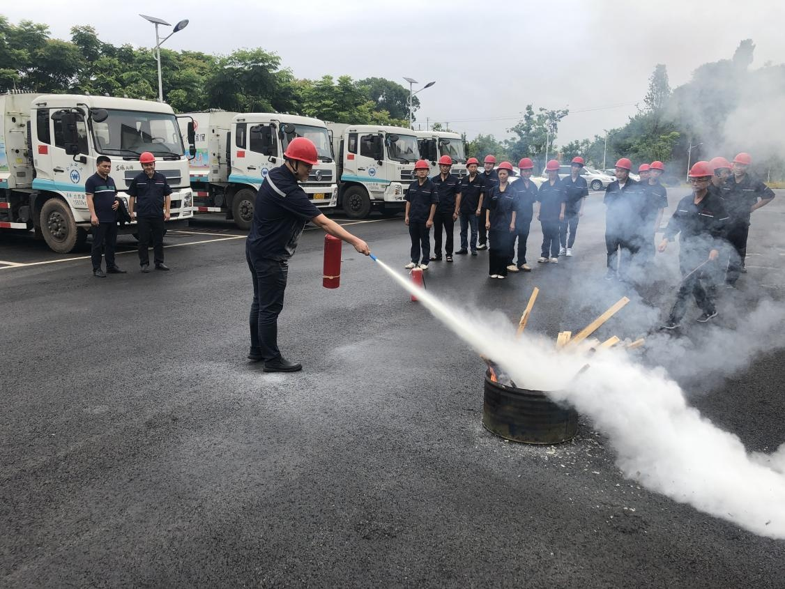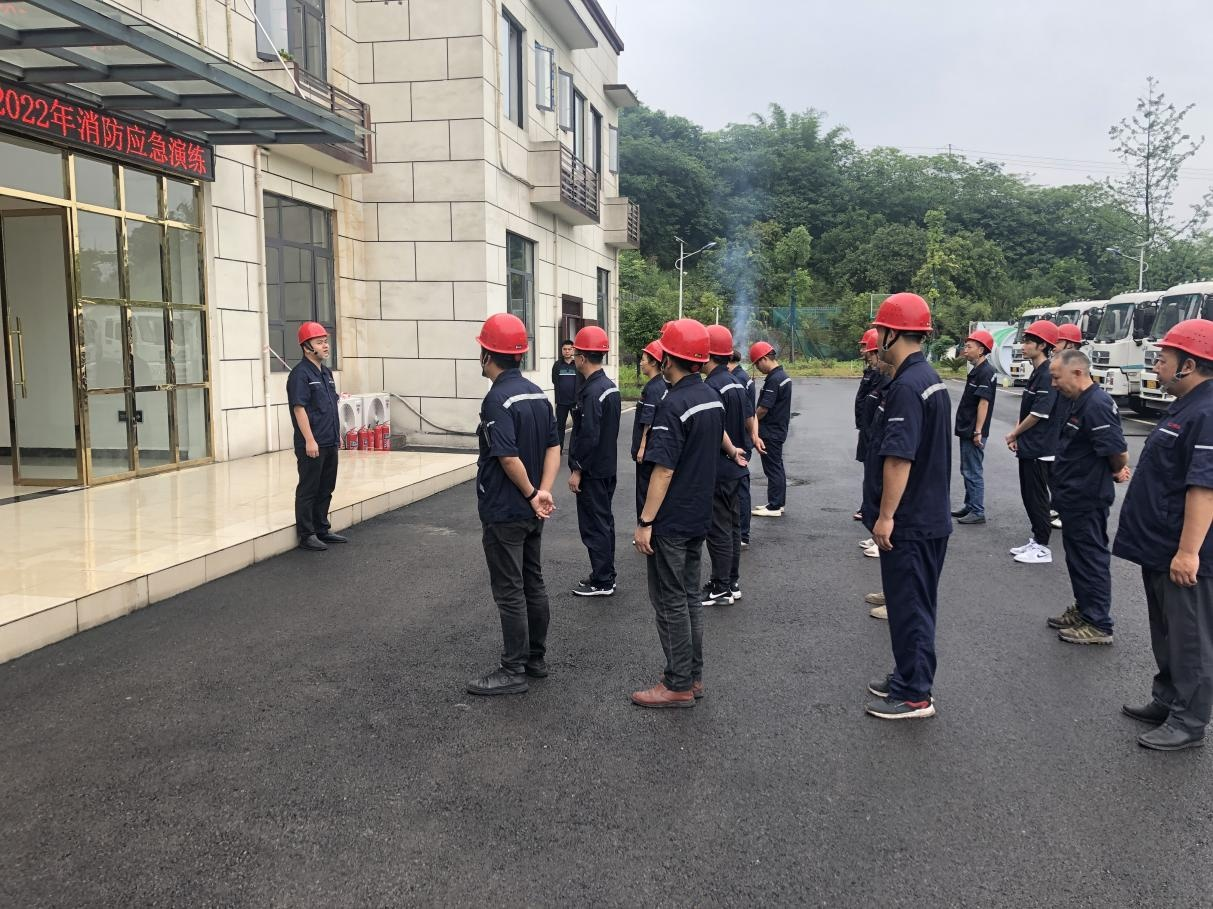 2022 年 5 月 27 日, 城投子公司匯鑫環(huán)保公司下屬的合江縣生 活垃圾壓縮中轉(zhuǎn)站舉行了 “ 預防為主, 安全第 一 ” 為主題的消防安全 應(yīng)急演練。