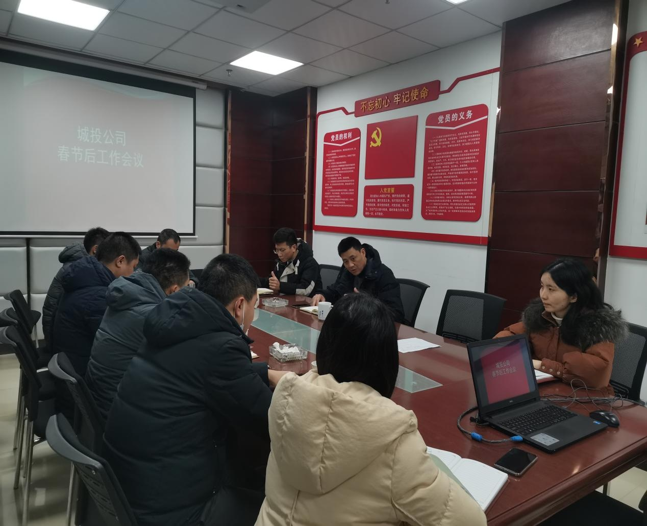2022 年 2 月 7 日上午,城投公司組織召開 2022 年春節(jié) 后工作會議, 會議由董事長鞠志良主持, 公司中層以上 干部 及下屬子公司負責人參會。