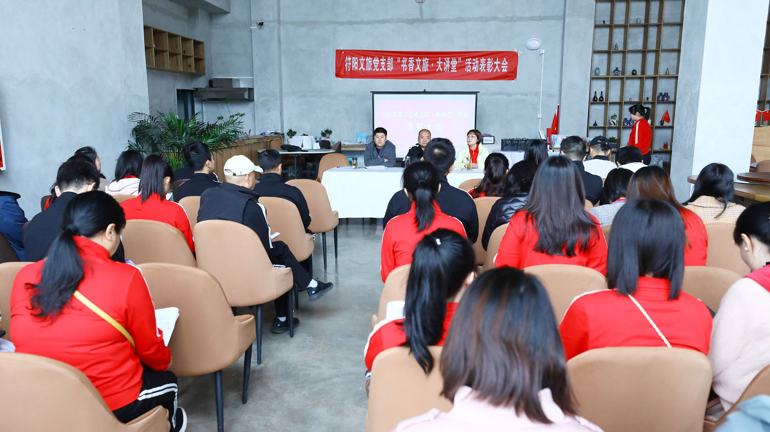 2022 年 3 月 23 日 上 午 , 符 陽 文 旅 黨 支 部 在 龍 掛 山 見 禧 山 語 召 開 2021 年 度 “ 書 香 文 旅 · 大 講 堂 ” 活 動 表 彰 大 會 , 會 上 支部書記譙棣升通報了活動開展情況, 同時進行了表彰獎勵, 并要求 2022 年再接再厲, 以更豐富的形式, 更精彩的內(nèi)容, 在開放、 互動、 熱烈的課堂氣氛中獲取知識, 助推動公司高 質(zhì)量發(fā)展。