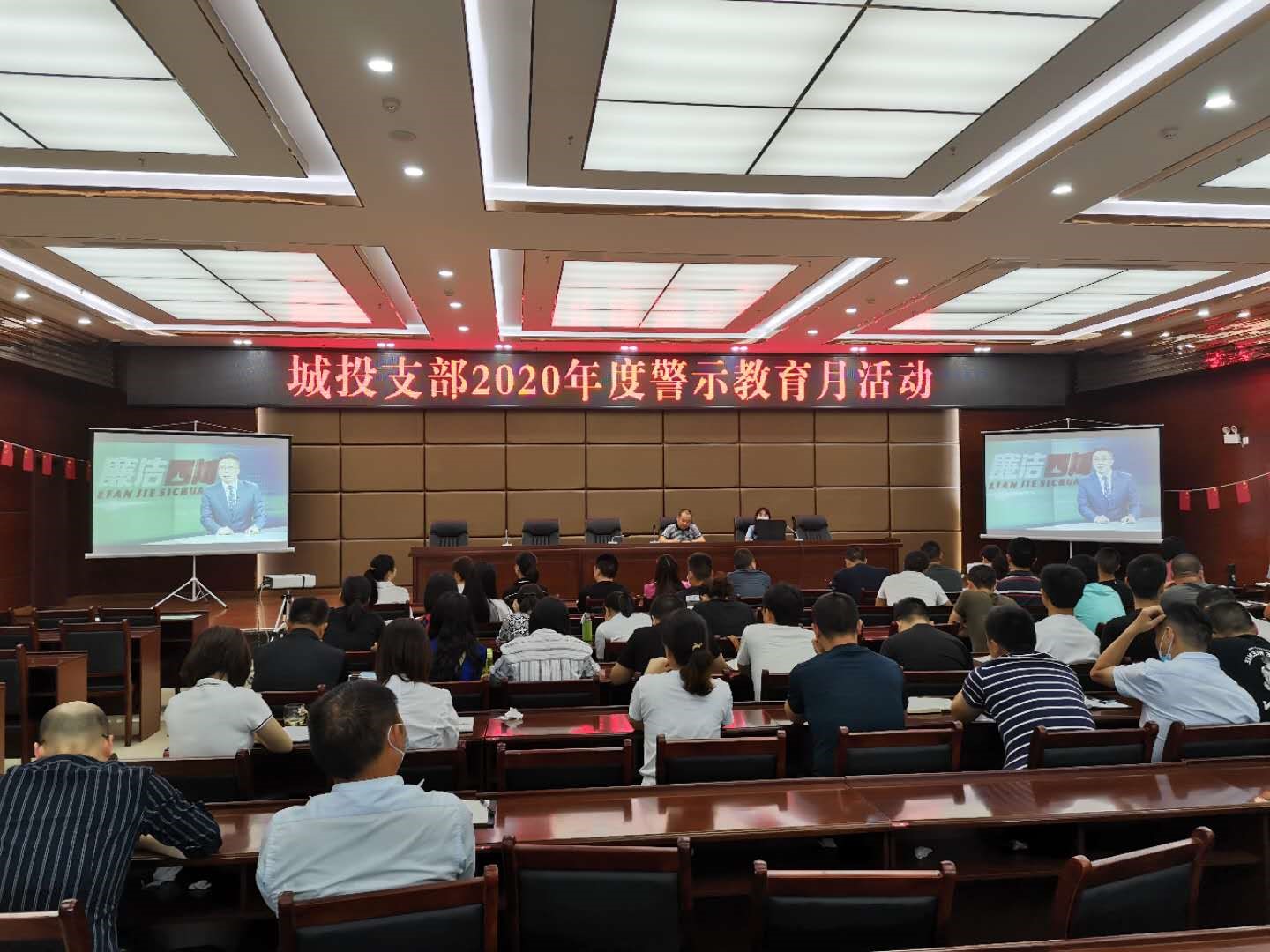 2020年5月22日,城投支部召集支部全體黨員、中層及以上領導干部、重點崗位人員開展2020年度警示教育月活動。