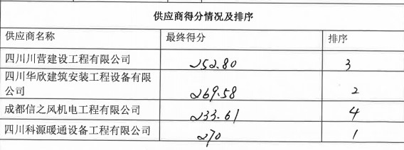 中選單位為:四川科源暖通設備工程有限公司,中選金額為:629582.01元。