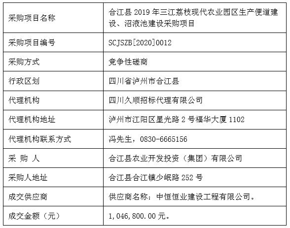 合江縣2019年三江荔枝現(xiàn)代農(nóng)業(yè)園區(qū)生產(chǎn)便道、沼液池建設(shè)采購項(xiàng)目競爭性磋商成交公告