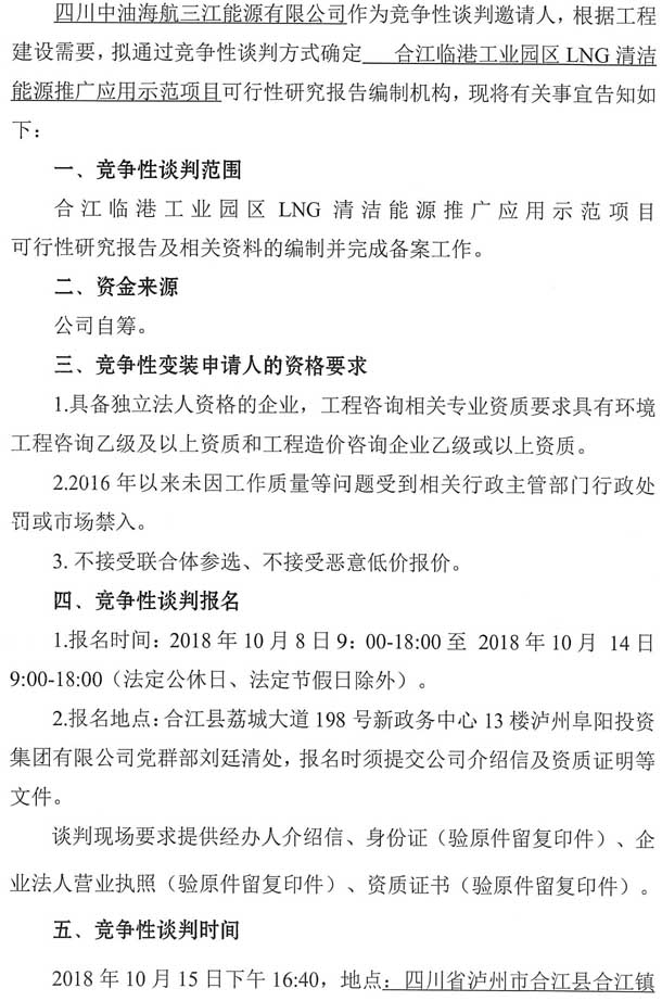 合江臨港工業(yè)園區(qū)LNG清潔能源推廣應(yīng)用示范項(xiàng)目可行性研究報(bào)告編制單位競爭性談判公告.doc