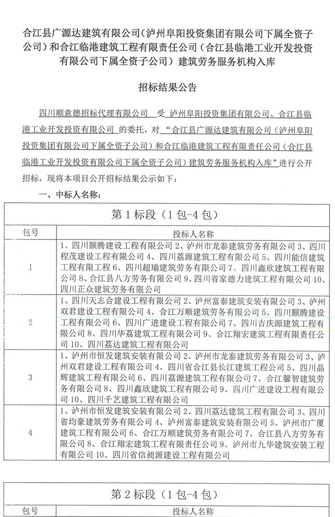 公告:建筑勞務(wù)服務(wù)機構(gòu)入庫招標(biāo)結(jié)果公告