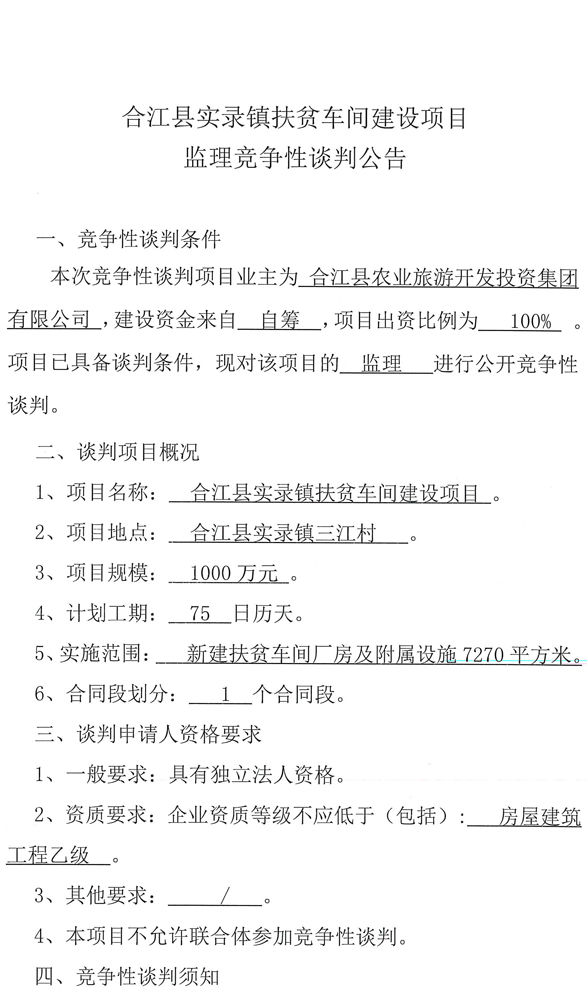 合江縣實(shí)錄鎮(zhèn)扶貧車(chē)間建設(shè)項(xiàng)目監(jiān)理競(jìng)爭(zhēng)性談判公告.docx