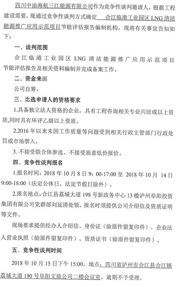 合江臨港工業(yè)園區(qū)LNG清潔能源推廣應用示范項目節(jié)能評估報告編制單位競爭性談判公告.doc