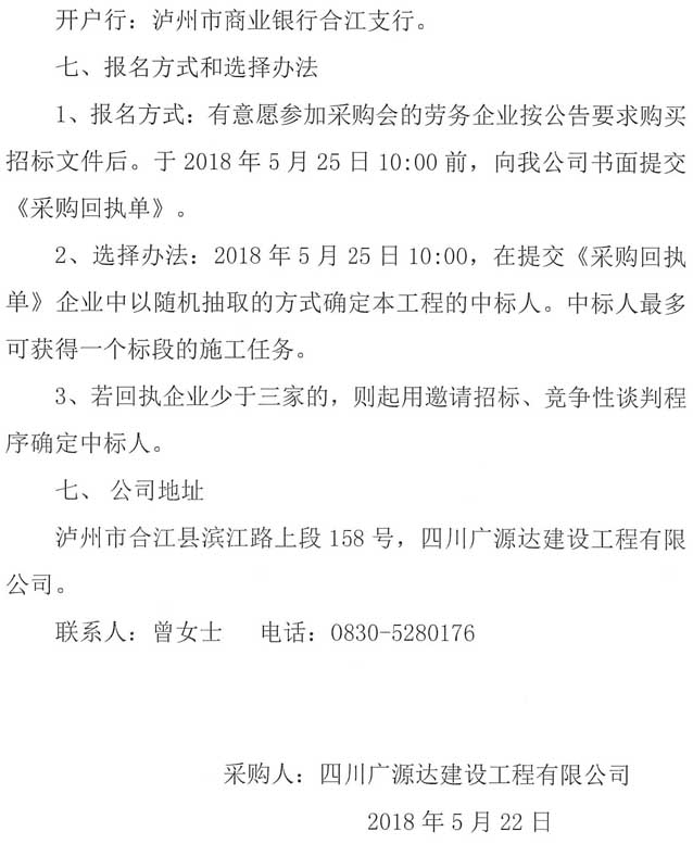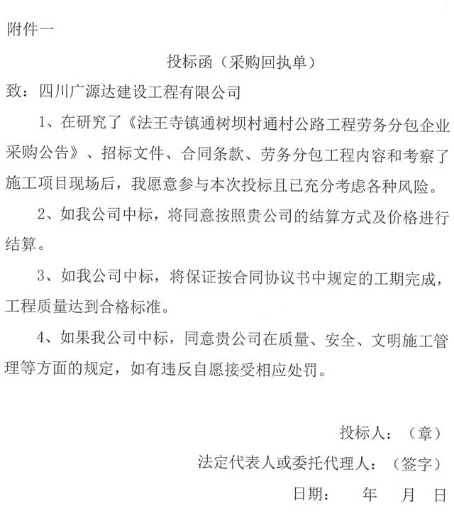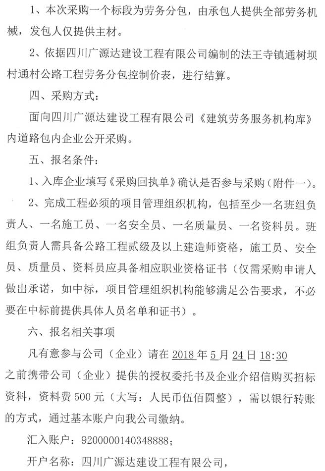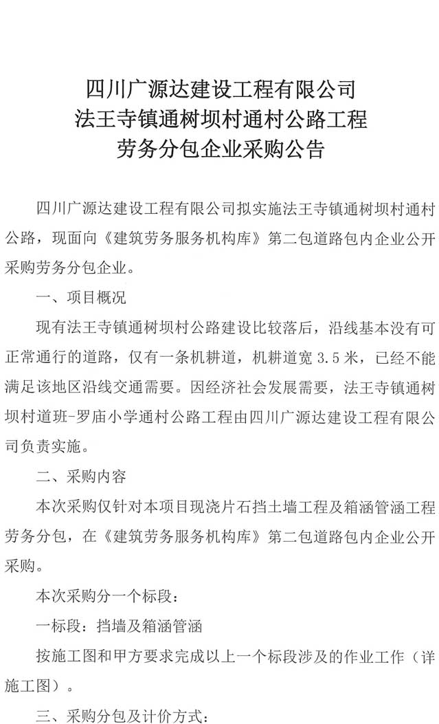 四川廣源達建設(shè)工程有限公司法王寺鎮(zhèn)通樹壩村通村公路工程勞務分包企業(yè)采購公告.doc