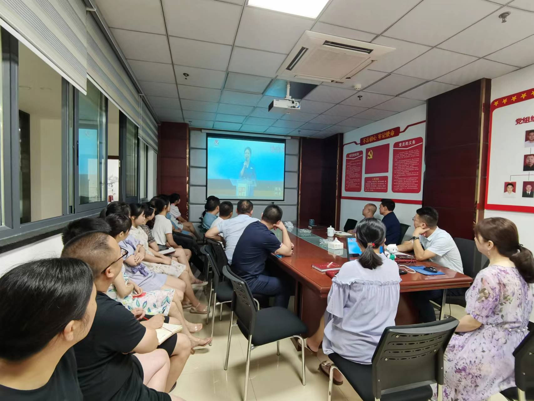 2022 年 7 月 14 日 上 午 , 阜 陽(yáng) 集 團(tuán) 黨 委 組 織 全 體 員 工 觀 看 《 陽(yáng) 光 問(wèn)廉》節(jié)目,采取集中和分散相結(jié)合的形式觀看。