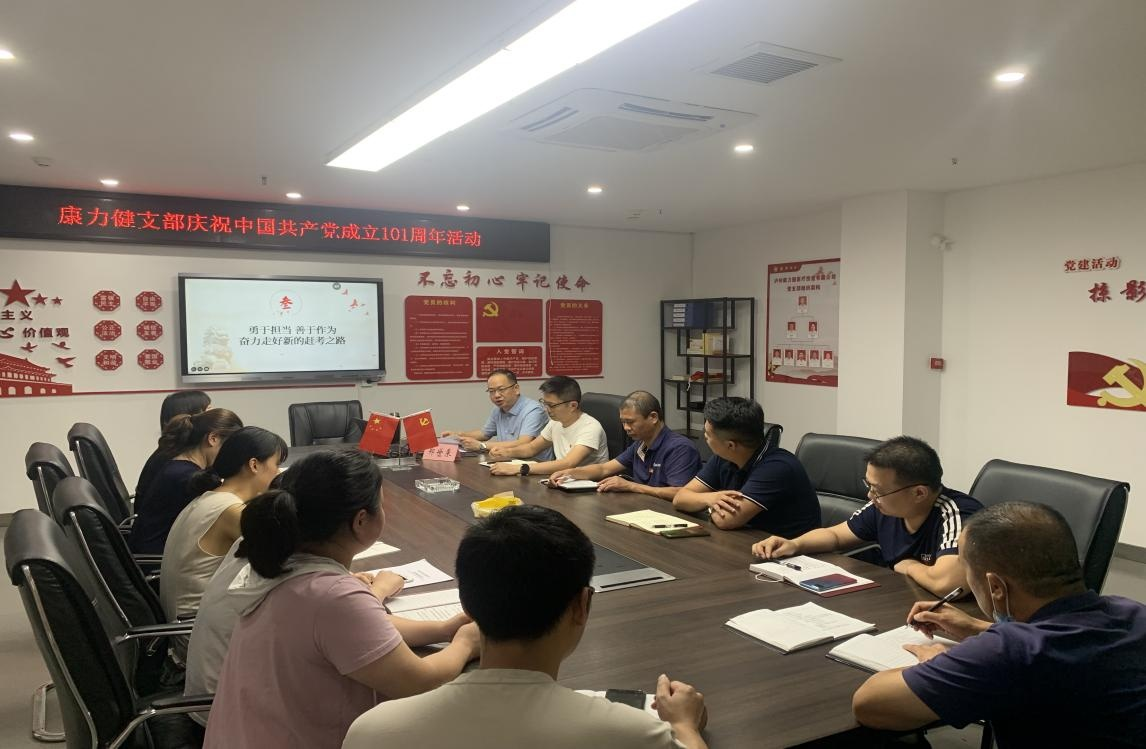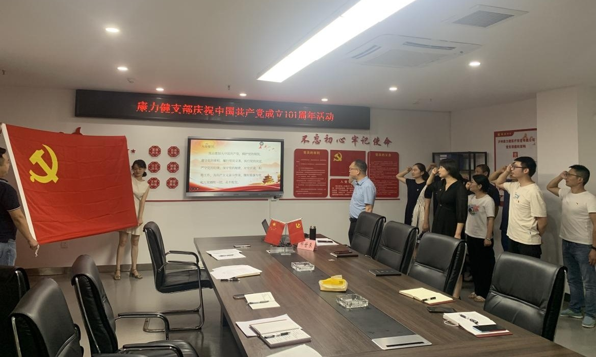 為慶祝中國共產黨建黨 101 周年, 7 月 1 日, 康力健黨支部開展 “七一” 主題黨日活動, 通過唱紅歌、 重溫入黨誓詞、 支部書記講黨 課等多種形式, 教育引導黨員干部不忘初心, 知行合一, 以實際行動 迎接黨的二十大勝利召開。