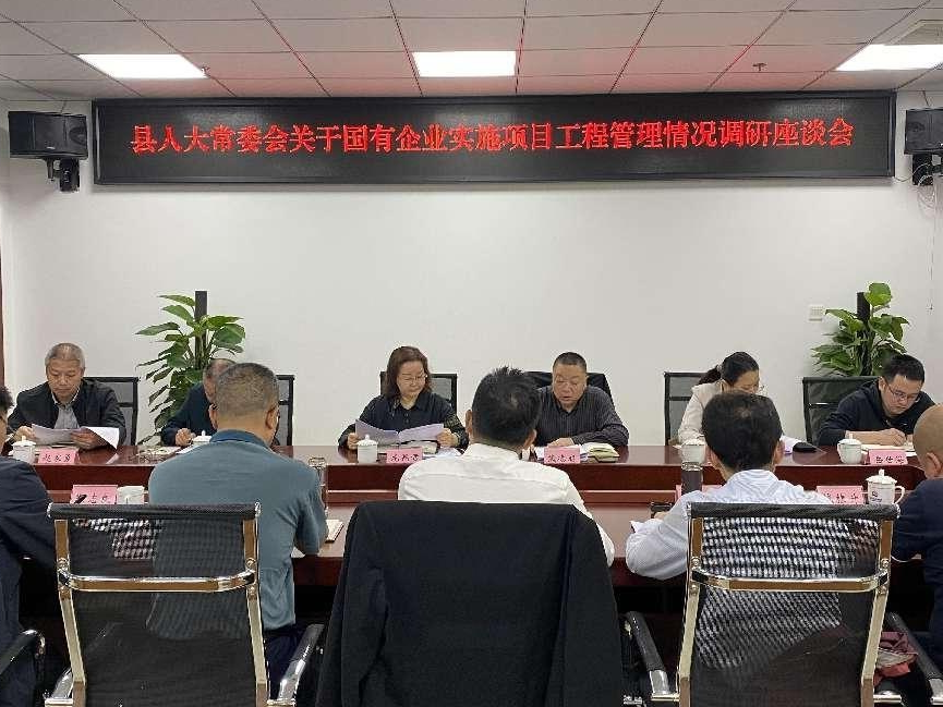 2022 年 5 月 16 日 上 午 , 合江縣人大常委會(huì)副主任龍昆君帶領(lǐng)縣發(fā)改局、 財(cái)政局、 審計(jì)局、 住建局、 民政局、 交運(yùn)局、 綜合執(zhí)法局等部門相關(guān)負(fù)責(zé)人, 到阜陽集團(tuán)召開國有企 業(yè)實(shí)施項(xiàng)目工程管理情況調(diào)研座談會(huì)。 阜陽集團(tuán)董事長(zhǎng)陳目科、總經(jīng)理任東財(cái)及涉及工程項(xiàng)目管理的二級(jí)公司負(fù)責(zé)人、相關(guān)人員參加了會(huì)議。