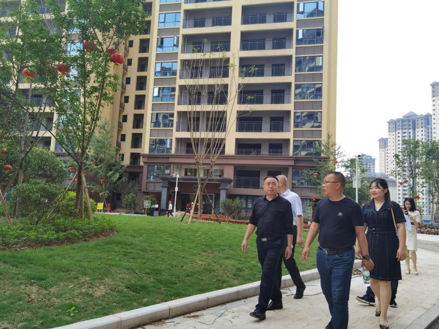 2021年5月11日,財監(jiān)局局長楊向前率隊調(diào)研鑫晟學府項目建設(shè)銷售情況。調(diào)研組一行實地查看了中庭建設(shè)情況、樣板間裝修情況,并詳細了解了項目銷售情況。楊局強調(diào):鑫晟學府項目作為縣國企第一個房開項目,一定要及時完成建設(shè)銷售工作,體現(xiàn)經(jīng)濟效益。